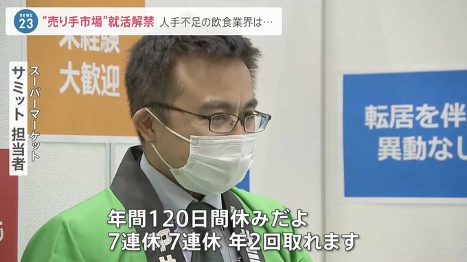 「大きな連休が取れないというイメージがあるけど違うんだ。一部店舗は除くけど、年始三が日、1月1、2、3日休みだよ。年間120日間休みだよ。7連休を年2回取れます」