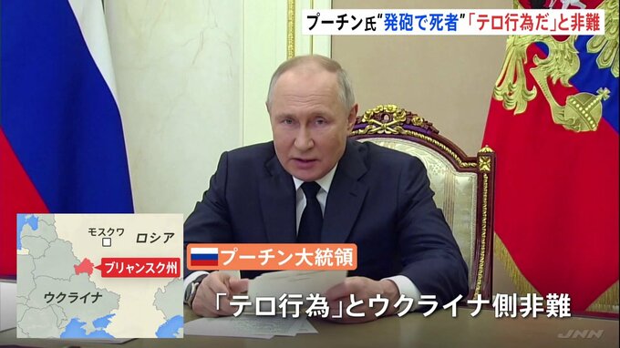 ロシアのプーチン大統領は、ウクライナと国境を接するロシア西部の州で、ウクライナ側の破壊工作グループが発砲し死者が出たと主張し、「テロ行為だ」と非難しました。プーチン大統領は2日、西部ブリャンスク州に…
