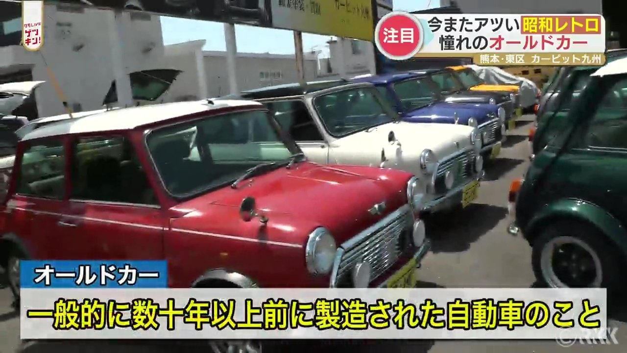 ここでは、一番古くて1960年代のものから「ミニクーパー」や「ローバーミニ」など人気のオールドカーが並んでいます。