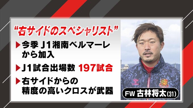 このほか、私が注目しているのは今シーズンJ1の湘南ベルマーレから加入した「右サイドのスペシャリスト」古林将太選手です。古林選手は何といっても経験が豊富です。