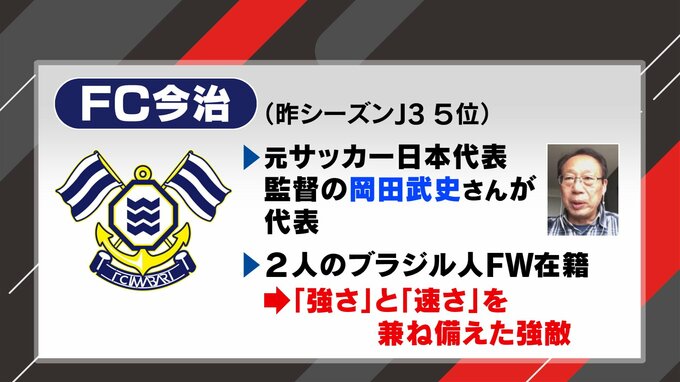 FC今治は元サッカー日本代表監督の岡田武史さんが代表を務めるクラブで昨シーズン5位でした。2人のブラジル人FWを軸とした攻撃陣が強力で、服部監督も「強さと速さを兼ね備えた強敵」だと警戒していました。