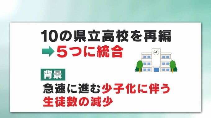 福島県教育委員会は、今年4月から10の県立高校を再編し、5つに統合します。再編の背景にあるのは、急速に進む少子化に伴う生徒数の減少です。県北地区では、梁川と保原が統合し伊達高校に。大学進学や就職など、幅…