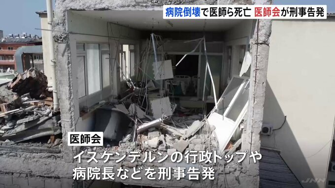 トルコ南部にある国立病院が大地震で倒壊し、医師や患者らが死亡しました。11年前の耐震検査で「不合格」とされた建物で、医師会が地元の行政トップなどを刑事告発しました。記者「集中治療室が入っていた6階建て…