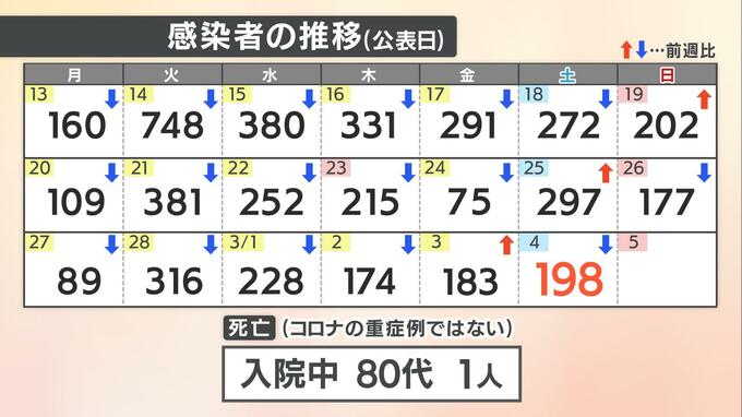 新型コロナウイルスの感染状況です。愛媛県が4日に発表した新たな感染者は198人で、80代の入院患者1人の死亡も公表されました。新型コロナの重症例ではないということです。医療圏域別では、松山市とそ…