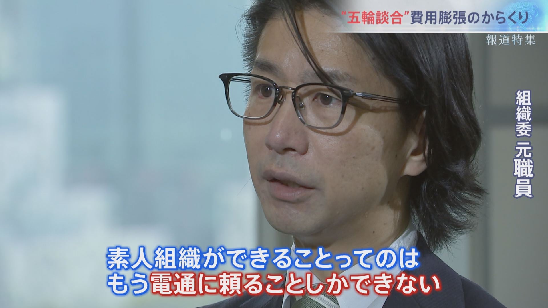 報道特集は4人の組織委員会元職員を取材。出身母体は広告代理店、自治体、競技団体など。口々に語られたのは、費用が膨らんだ“からくり”だ。