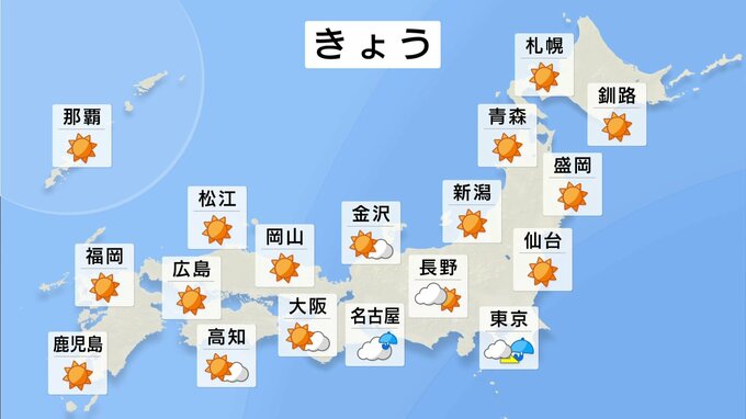 気温や雨の情報など、3月5日このあとの天気をお伝えします。今日は沖縄から北海道の広い範囲で朝から穏やかに晴れ、昼間は日差し暖かいでしょう。お出かけ日和、洗濯日和になるところが多くなりそうです。ただ、東…