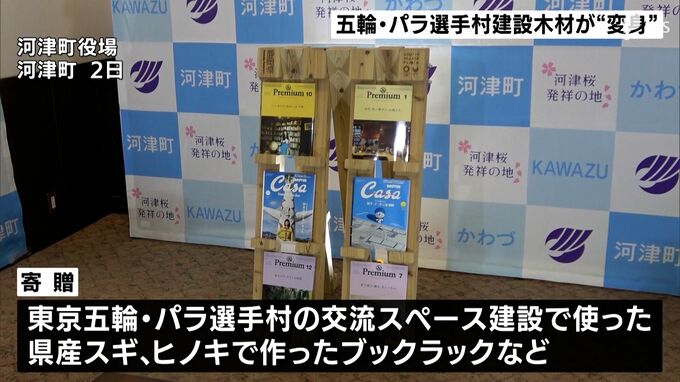 東京オリンピック・パラリンピックの選手村建設に使われた静岡県産の木材が、ブックラックなどに生まれ変わり、3月2日、静岡県河津町役場で贈呈式が行われました。今回、河津町に贈られたのは、東京オリンピック・…