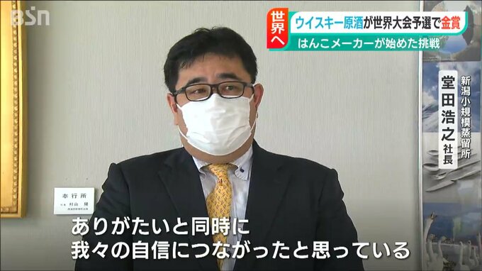 【新潟小規模蒸留所 堂田浩之 社長】「まだ2年目のルーキーだが、その段階でこういった賞をいただけてありがたいと同時に我々の自信に繋がったと思っている」