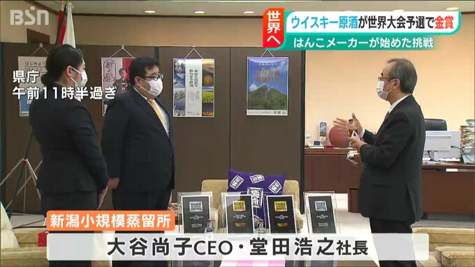 新潟市のはんこメーカーが2年前に製造を始めたウイスキー。世界的権威のある大会の日本予選で最高金賞を受賞し、花角知事に結果を報告しました。