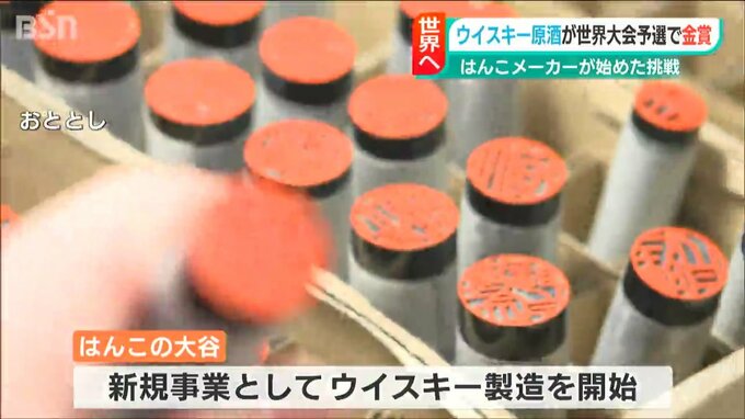 新潟市にある業界最大手のはんこメーカー「はんこの大谷」が新規事業として2年前にスタートしたウイスキーづくり。国内外の蒸留所などに基礎を学び、失敗を繰り返しながら一歩ずつ前に進んできたといいます。