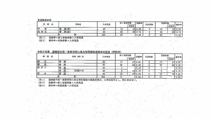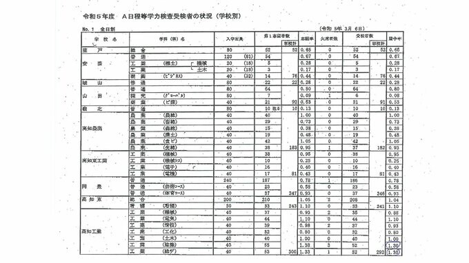 ※高知県 公立高校入試A日程 受検状況(全校掲載)は画像をご覧ください