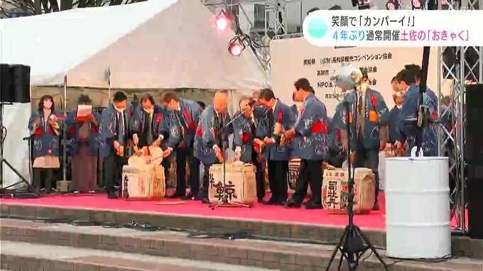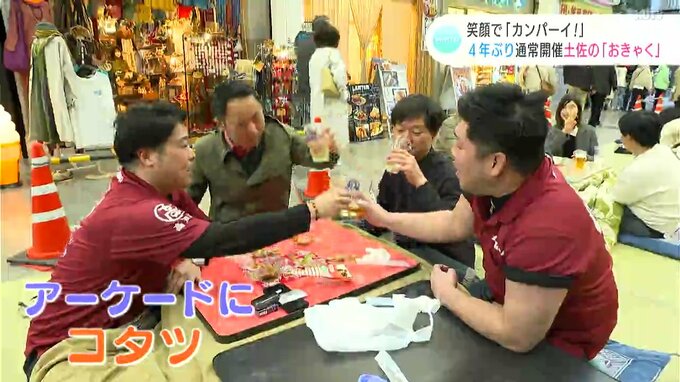 春の恒例イベント=土佐の「おきゃく」が、4日から始まりました。通常開催は4年ぶりで、訪れた大勢の人たちが久しぶりのおきゃくを楽しみました。