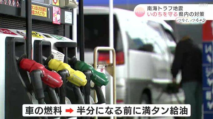 この中では助かった命を「つなぐ」ための対策も紹介されています。特別な備蓄品ではなく、普段から口にしている水や食料を「備える」「食べる」「補充する」ことを繰り返すローリングストックや、車の燃料が半分になる前に満タン給油をするといったことは日々の生活にすぐ取り入れられます。