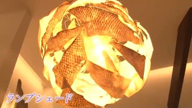 富山県・南砺市(なんとし)にある宿泊型レストランの「レヴォ」。エントランスを照らすのは、フィッシュレザーで作ったランプシェードです。