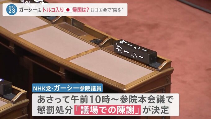 2022年7月の参院選当選後もドバイに滞在したまま、一度も国会に登院していないNHK党のガーシー参院議員。8日午前10時からの参院本会議で、懲罰処分である「議場での陳謝」を行うことが決まっています。
