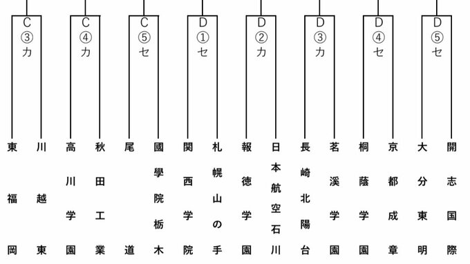 去年の選抜大会に優勝し2連覇を狙う兵庫の報徳学園は、日本航空石川と対戦。その兵庫のライバルである関西学院は、札幌山の手と対戦。