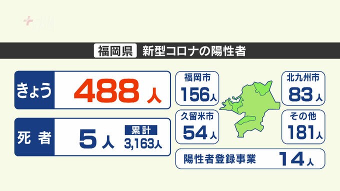新型コロナウイルスの感染状況です。福岡県は7日、新たに488人の陽性を発表しました。前の週の火曜日を100人あまり下回りました。発表自治体別の内訳は、福岡市が156人、北九州市が83人などとなっ…