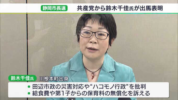 4月9日に投開票が行われる静岡市長選挙に、共産党静岡県委員会に所属する女性が党の公認候補として立候補を表明しました。3月7日、静岡市長選挙に立候補を表明したのは、共産党に所属する鈴木千佳さんです。鈴木さ…
