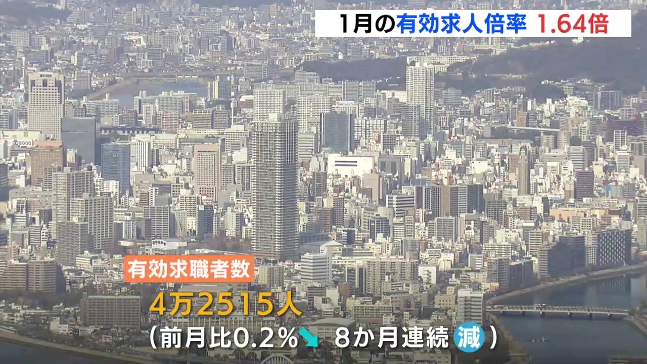 広島労働局が発表した1月の有効求人倍率は1.64倍で、前の月から0.01ポイント低下しました。