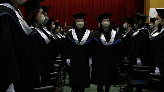 岡山市のノートルダム清心女子大学で、欧米の伝統的な卒業衣装を身に付ける式典が行われ、4年ぶりに全卒業生が集まりました。この大学では70年前からアカデミック・ドレスと呼ばれる伝統的な式服で学生の卒業を祝…