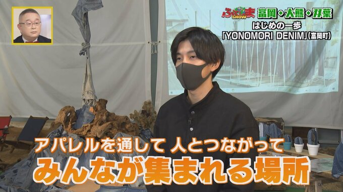--YONOMORI DENIM 小林奨さん「富岡町出身ですが、3年前に戻ってきた時は、何もなく人もいない状況で。元々アパレルの経験があったので、アパレルを通して、皆が繋がれる場所、拠点を作りたいと思った。」