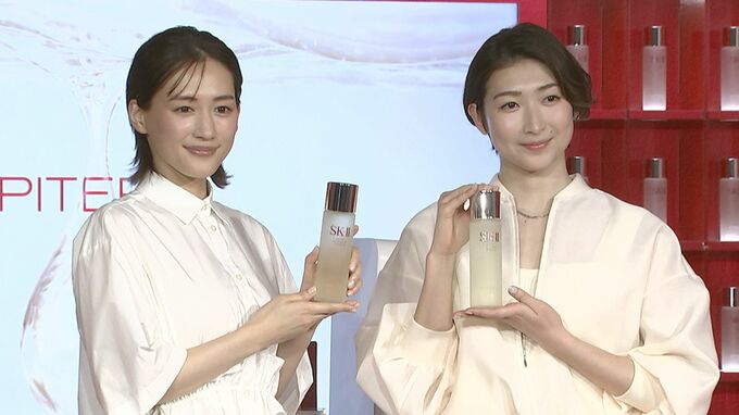 女優の綾瀬はるかさんと、競泳の池江璃花子選手が、スキンケアブランドSK-Ⅱの 「新ピテラ™️トライアルキャンペーン SK-Ⅱ肌測定イベント」に登壇しました。綾瀬さんは白いシャツワンピース、池江さんは白いシャツに白いパンツのセットアップで華やかに登場。今回が初対面という2人。池江さんは“すごくたくさんの方に『綾瀬さんの肌はすごくキレイ』という話を聞いていたので、生で見て、やはり美しいと思いました”と、綾瀬さんの美肌に感動した様子。