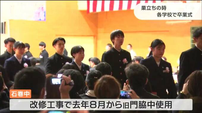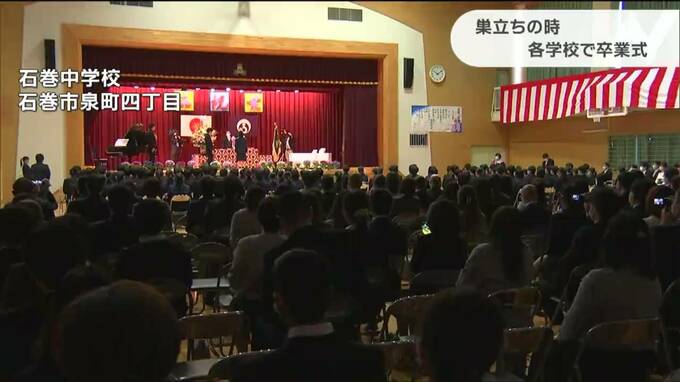 石巻市など宮城県内の中学校で卒業式が行なわれ、コロナ禍で3年間を過ごした生徒たちが学び舎を巣立ちました。