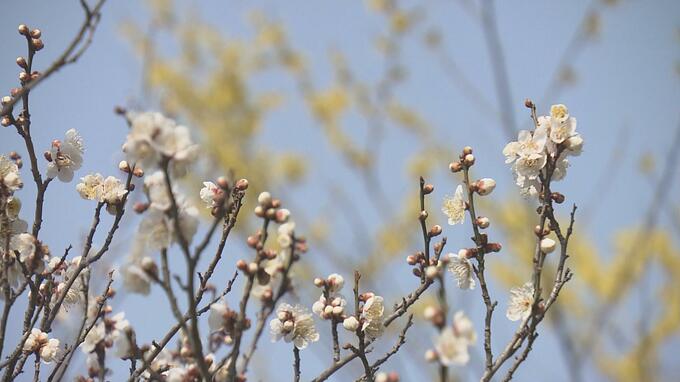 ふくしま花案内人・佐藤光さん「これは梅ですね。白梅。今が見ごろ。まだまだこれからお彼岸にかけてずっと続けて咲きます。」