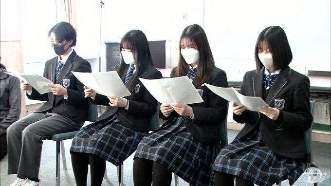八戸市の高校生が盲学校の子どもたちに自分たちで物語を読んで録音した「声の教科書」を贈り、読書の楽しさを伝えました。※CDプレーヤーの音「1ねん2くみの子どもたちがたいそうをしていると、空に大きなくじらが…