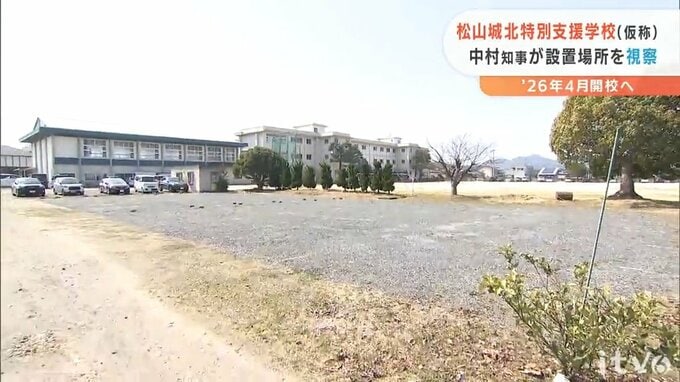 愛媛県松山市に2026年4月に開校する仮称・松山城北特別支援学校の予定地を8日、中村知事が視察しました。仮称・松山城北特別支援学校は、松山市馬木町の松山聾学校の敷地内に設置されることが決まっていて、8…