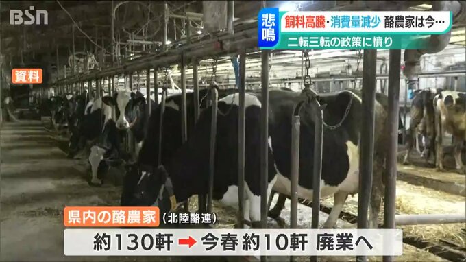 新潟県を含む北陸4県の酪農家団体『北陸酪農業協働組合連合会』によりますと、新潟県内130軒ほどの酪農家のうち、およそ10軒がこの春以降に廃業するということです。