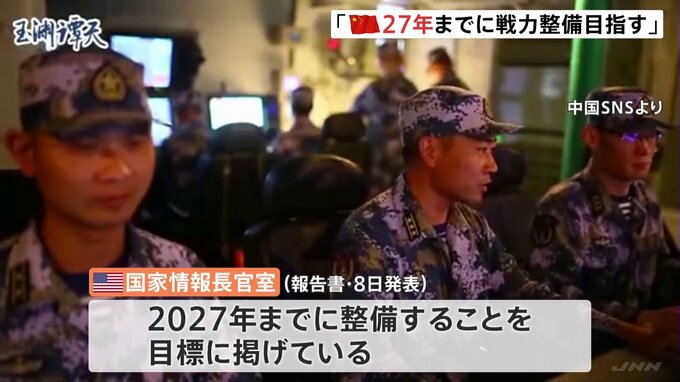 アメリカの情報機関は、中国が台湾統一に向けた圧力を強め、2027年までにアメリカの介入を抑止できる戦力の整備を目指していると指摘しました。アメリカの国家情報長官室は8日、世界の脅威を分析した報告書を発表…