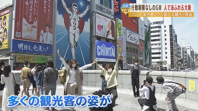 3年ぶりに“行動制限”がないゴールデンウィーク。1年前の5月1日、大阪は緊急事態宣言中で、ミナミは閑散としていました。今年はどうなっているのか。5月2日、取材班が戎橋を訪れると、平日にもかかわらずコロナ前のように“お決まりのポーズ”で写真に収まる多くの観光客の姿がありました。
