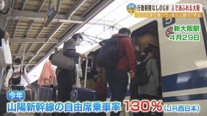 今年はホーム上に大勢の人がいるなど賑わい、JR西日本によりますと、連休初日の4月29日の自由席乗車率は、山陽新幹線で最大で130%となりました。