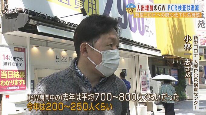 「(Qまるで雰囲気が違いますね?)全く違いますね。去年のGWは向こうの(歩道橋の)階段降りる方まで並んでいたんですよ。時間でいうと3時間は並ぶんですよ。(Q今年のGWはどんな状況ですか?)去年のGW期間中は平均700~800人くらいだったんですけども、今年は200~250人くらい」