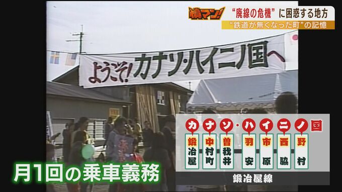 そんな中、当時、全国的に「ミニ独立国」を名乗って町おこしすることがブームになっていて、この地域でも鍛冶屋線の7つの駅の頭文字を取り、「カナソ・ハイニノ国」と名乗り、住民に月1回の乗車を義務付けるなど鍛冶屋線存続のための運動が行われました。
