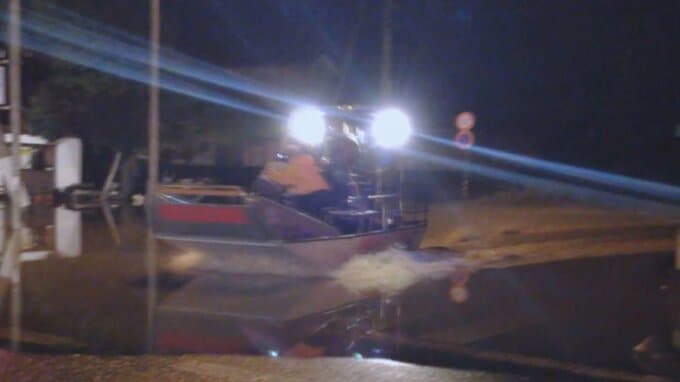 佐々木さんが救助に出てから40分後。救助拠点からヘッドライトの明かりが見えた。佐々木さんのエアボートだ。無事、取り残されていた人を乗せて帰ってきた。
