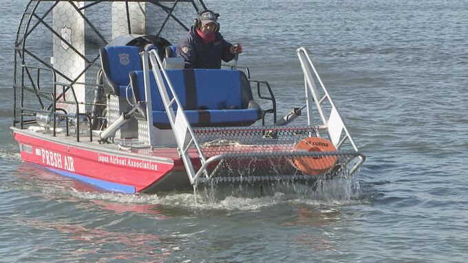 だが、そこには助けを待つ「いのち」がある。佐々木さんは意を決して、孤立していた人の元へ…。途中、救急隊員が引き返した流れが激しい場所も、佐々木さんのエアボートはものともしない。