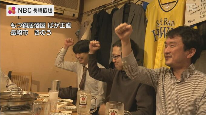 長崎市内の野球好きが集まる居酒屋にもファンが集まりました。