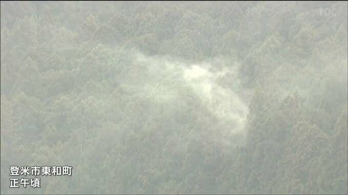 スギ林から煙のように大量の花粉が舞い上がる様子が見られました。