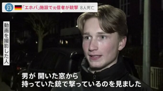 キリスト教系の宗教団体「エホバの証人」の集会が開かれていたドイツの宗教施設で銃撃事件が起き、容疑者を含む8人が死亡しました。容疑者は元信者の35歳の男で、犠牲者の中には胎児も含まれていたということです。