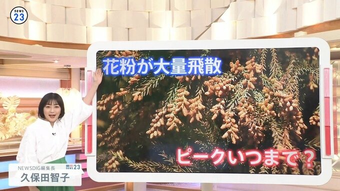 スギ花粉のピークは例年以上に長引きそうで、3月中旬から下旬までとなりそうです。