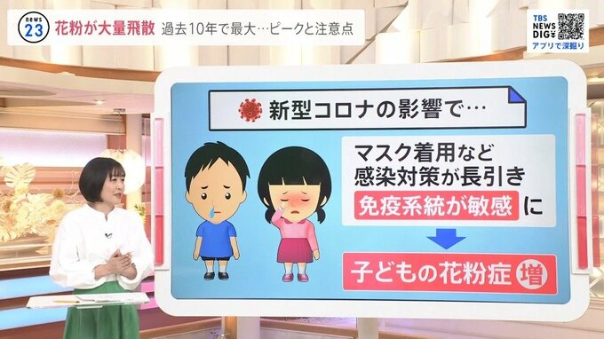 過去10年で最大レベルといわれている花粉の大量飛散によって、子どもの花粉症も増加しています。今後、花粉のピークはいつまで続くのか?またコロナ禍ならではの注意点とは?