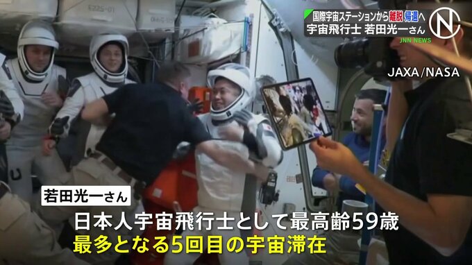 日本人宇宙飛行士の若田光一さんらを乗せた宇宙船が、国際宇宙ステーションから離脱しました。日本時間の12日、地球に帰還する予定です。若田光一さんは日本人宇宙飛行士として最高齢の59歳で、最多となる5回目の…