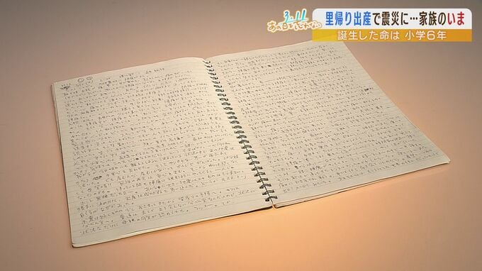 このひとことから始まる出産記録は、びっしり6ページ。地震は入院後、病室にいる時に起きました。