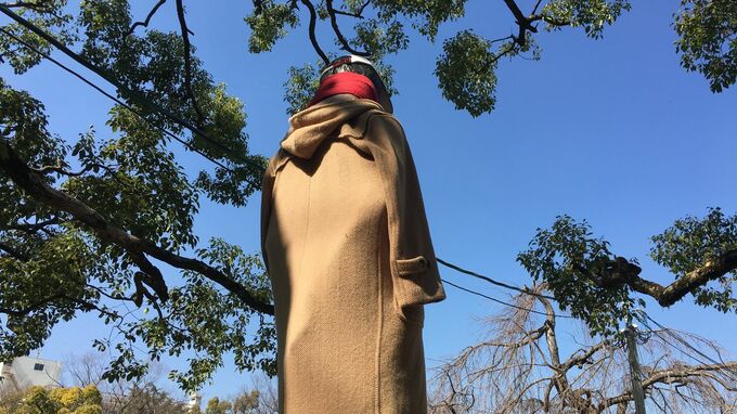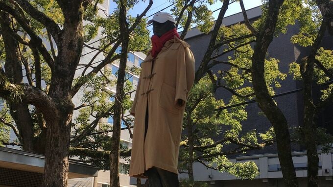 こちらは、帽子とマフラーにダッフルコートを羽織ったフル防寒仕様だ。ここまでいくと、もはや何の像なのか判別も難しく、「夜間は人に見えて恐ろしい」などと言う声すら聞こえてきそうだ。