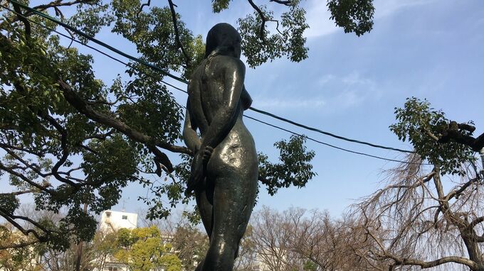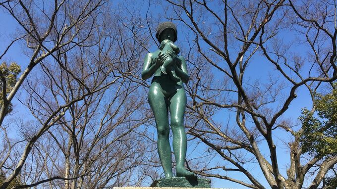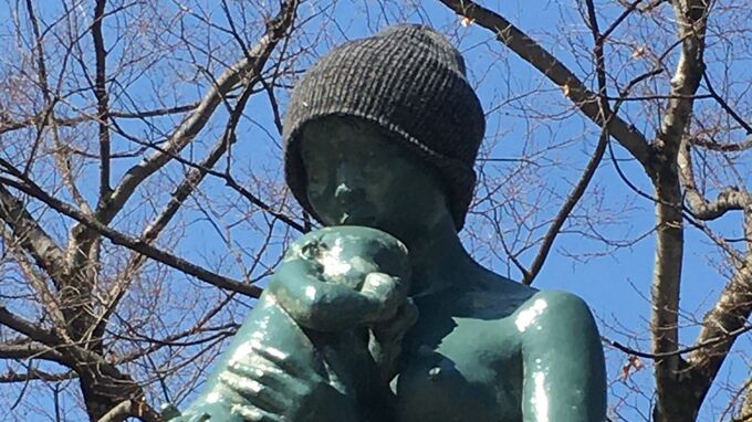 公園を後にしようとして、危うく見落とすところだった。まだあった。乳飲み子を抱えた女性(大桐国光作)がニットキャップを被っている。