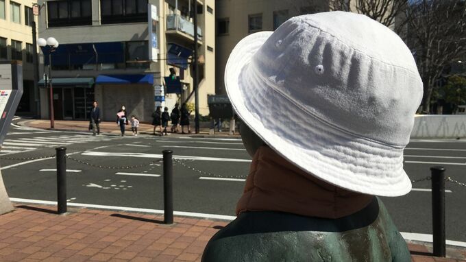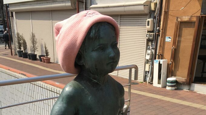 さて、少なくとも岡山の街ゆく人々は、防寒具が撤去された後も何事もなかったかのように収束を受け入れたように思えた。ところがだ。すっかり日差しが春めいた3月上旬のある日、交差点の桃太郎像を見て驚いた。