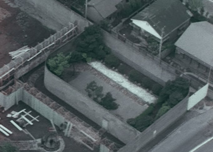 上空から巣鴨プリズンを望むと、かなり広い敷地にたくさんの施設が並ぶことが見てとれます。扇形になった庭は、戦犯たちの体操場だったということです。本来、お互いからお互いが見えたり立ち話などができないようにこういう形になったとされています。しかし一方、最期の瞬間を待つ戦犯たちが静かに談笑したり手作りの囲碁を打っていたのを見たという証言もあり、案外、管理は緩やかだったのかも知れません。