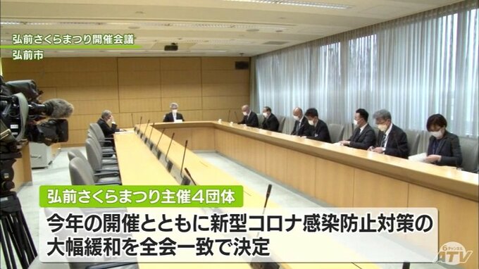 弘前さくらまつりの主催4団体は感染防止対策を大幅に緩和して、今年のまつりを開催することを決めました。4年ぶりに花を愛でながら宴会する花見客でにぎわいそうです。